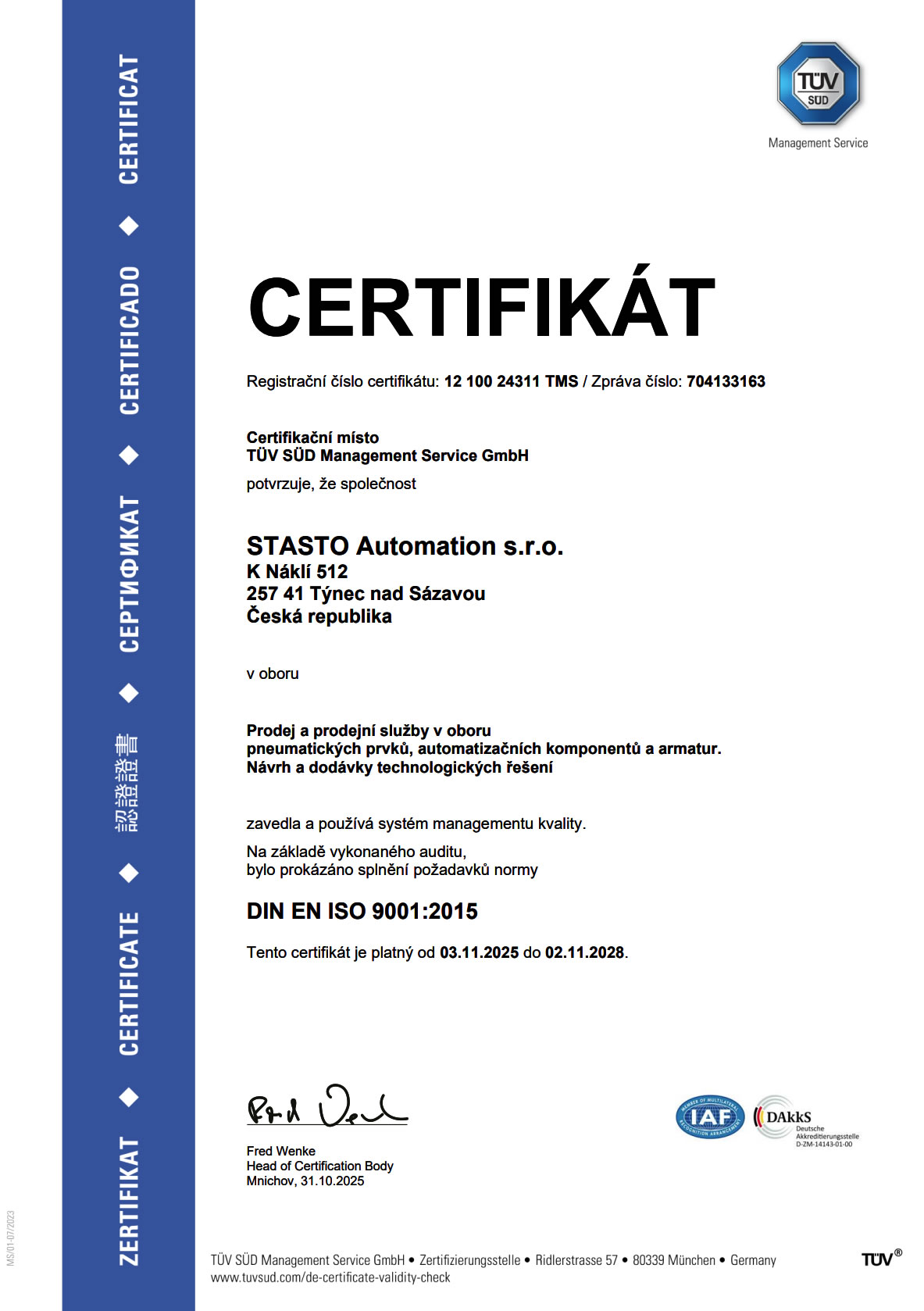 Certifikát ISO 9001 je pro nás samozřejmostí, ale hladká re-certifikace každý rok...